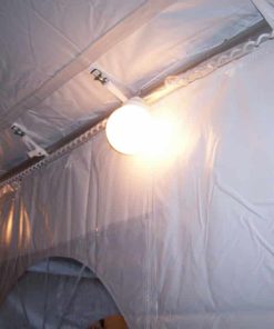 These globe style string lights attach to the perimeter of nearly any canopy or tent. They have a hook on the end of each light to attach to cables typically on the perimeter of tents. These lights use 40 watt bulbs.